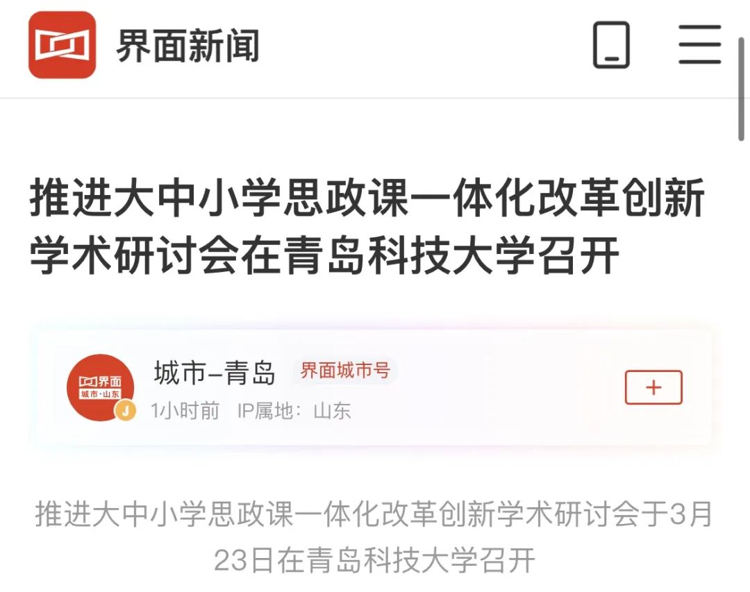 界面新闻:推进大中小学思政课一体化改革创新学术研讨会在太阳集团网站8722召开