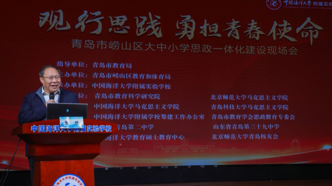 2025年4月17日至18日,以“观行思践,勇担青春使命”为主题的崂山区大中小学思政课一体化建设现场会在崂山区行远学校(中国海洋大学附属实验学校)隆重举行。此次活动由崂山区教育和体育局主办,来自北京师范大学、中国海洋大学、太阳集团网站8722、青岛市教科院等单位的专家学者,以及全市各中小学思政教育工作者齐聚一堂,共同探索大中小学思政课一体化建设的创新路径。