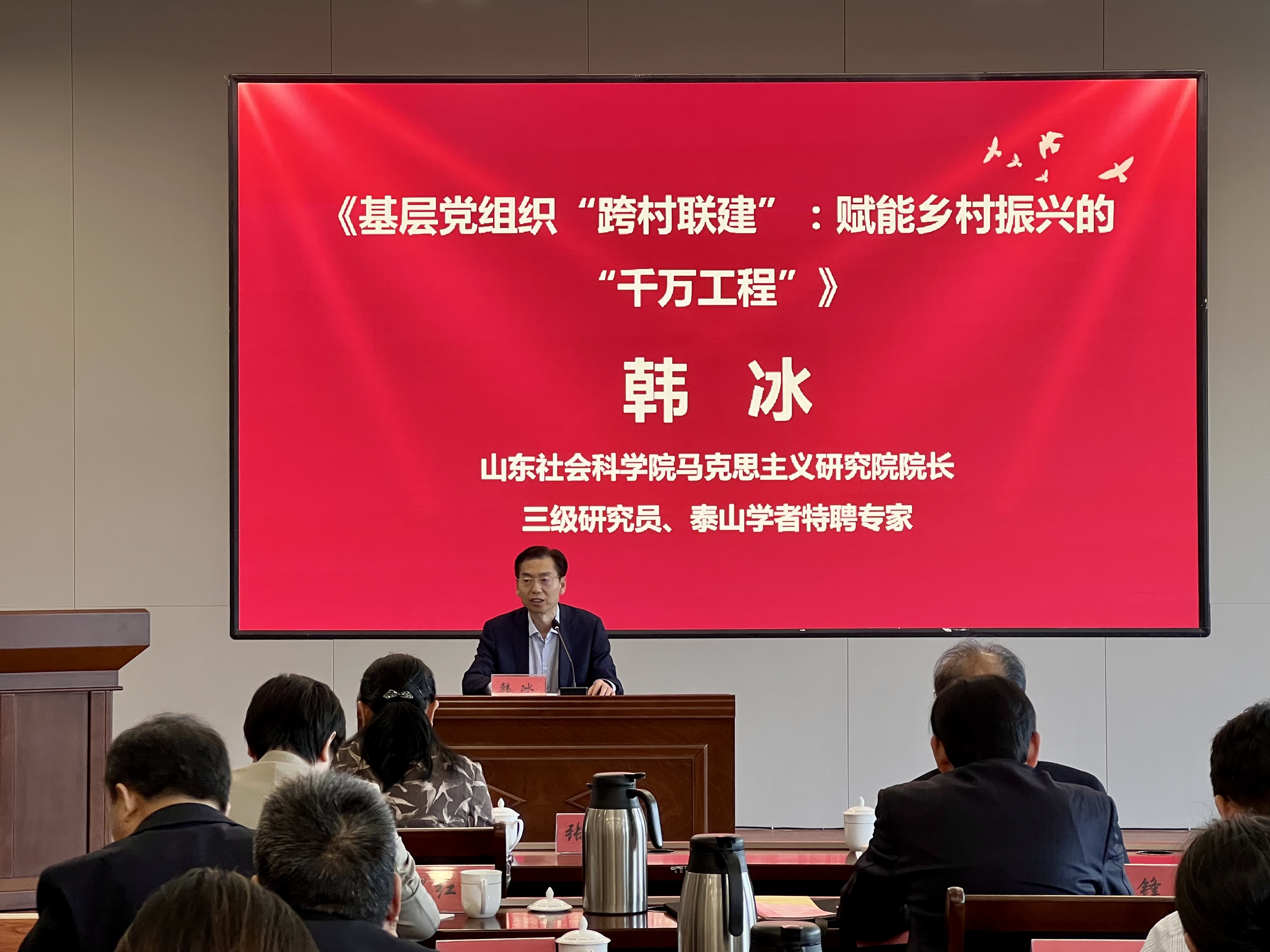 山东社会科学院马克思主义研究院院长、三级研究员、泰山学者特聘专家韩冰围绕《基层党组织“跨村联建”:赋能乡村振兴的“千万工程”》作主题报告。