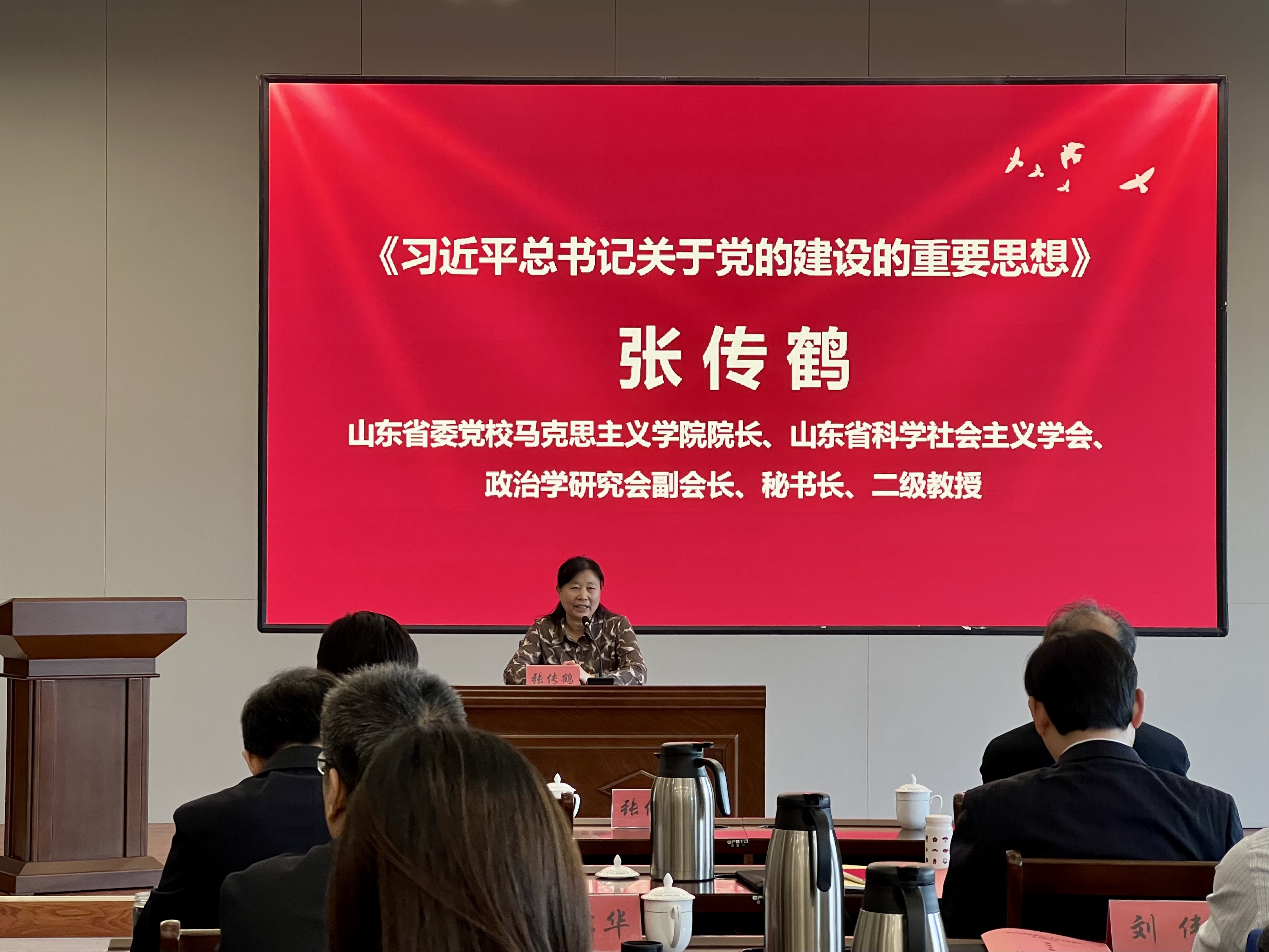 山东省委党校太阳集团城娱8722院长、山东省科学社会主义学会、政治学研究会副会长、秘书长、二级教授张传鹤围绕《习近平总书记关于党的建设的重要思想》作主题报告。