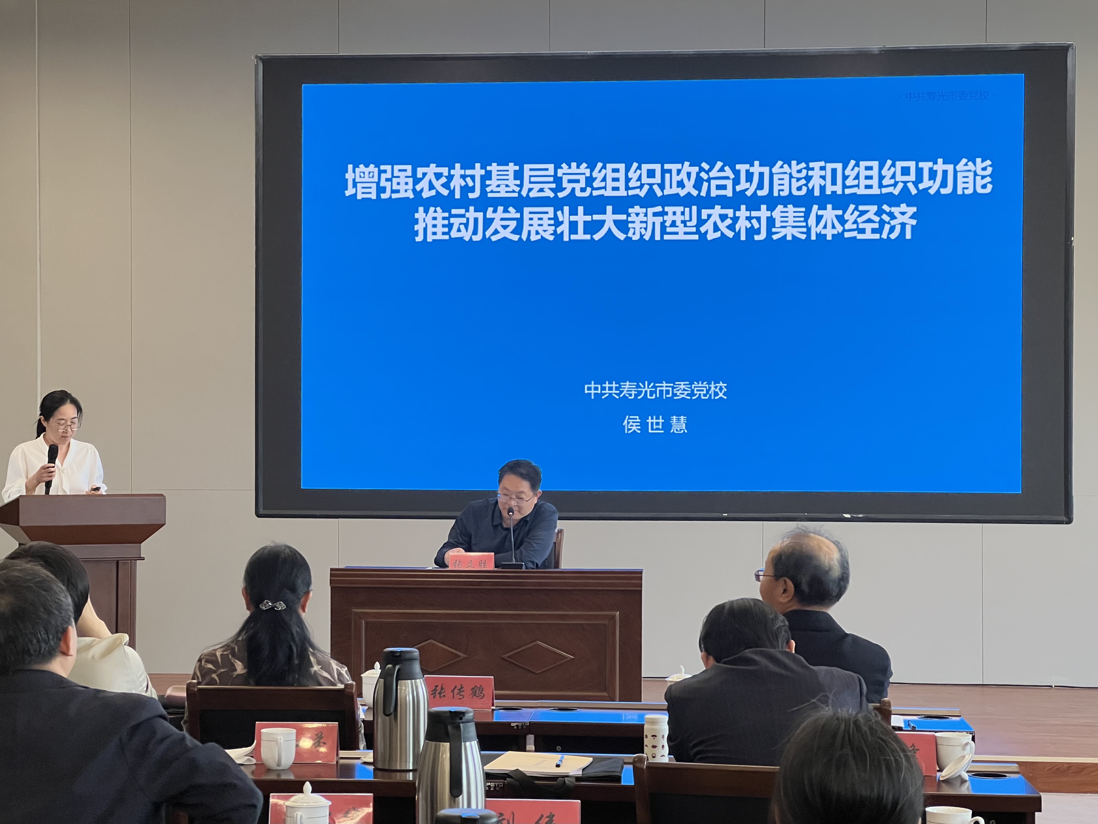 中共寿光市委党校讲师侯世慧以《增强农村基层党组织政治功能和组织功能推动发展壮大新型农村集体经济》为题发言