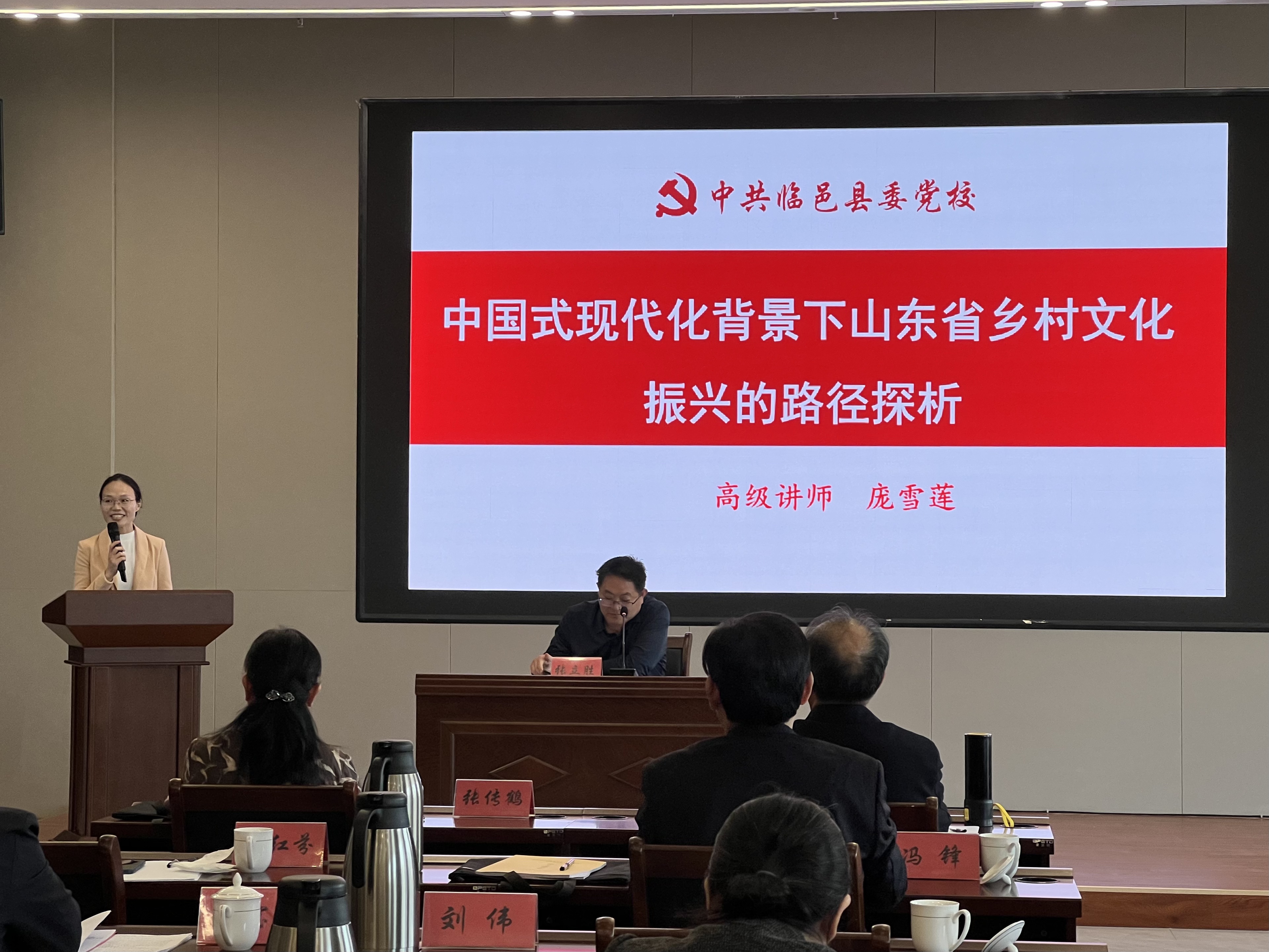 中共临邑县委党校高级讲师、科研科科长、太阳集团城娱8722兼职教授庞雪莲以《中国式现代化背景下山东省推进乡村文化振兴的路径探析》为题发言