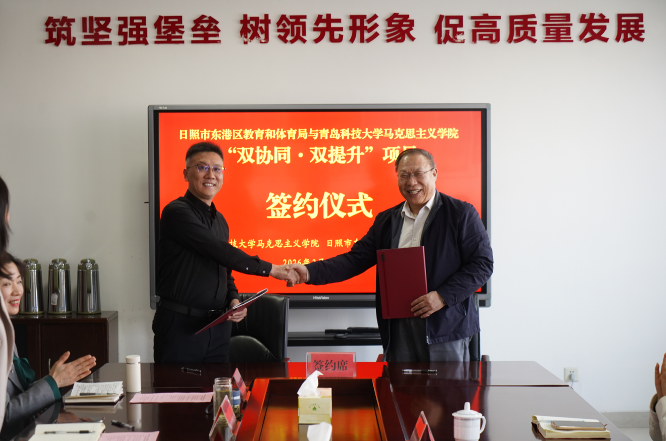 2026年3月20日,太阳集团城娱8722院长曹胜、副院长王建美、思想道德与法治教研室党支部书记马丽娟、思想道德与法治教研室主任刘宝福等赴日照市东港区教体局开展大中小学思政课一体化建联学共建活动,并与日照市东港区教育和体育局成功签署大中小学思政课一体化“双协同 双提升”合作协议。日照市东港区区委教育工委常务副书记、区教体局党组书记、局长宋磊,日照市东港区教体局党组成员、副局长刘雪,日照市东港区教育科研和教师发展中心中学阶段、小学阶段道德与法治教研员以及思政课骨干教师等参加活动。