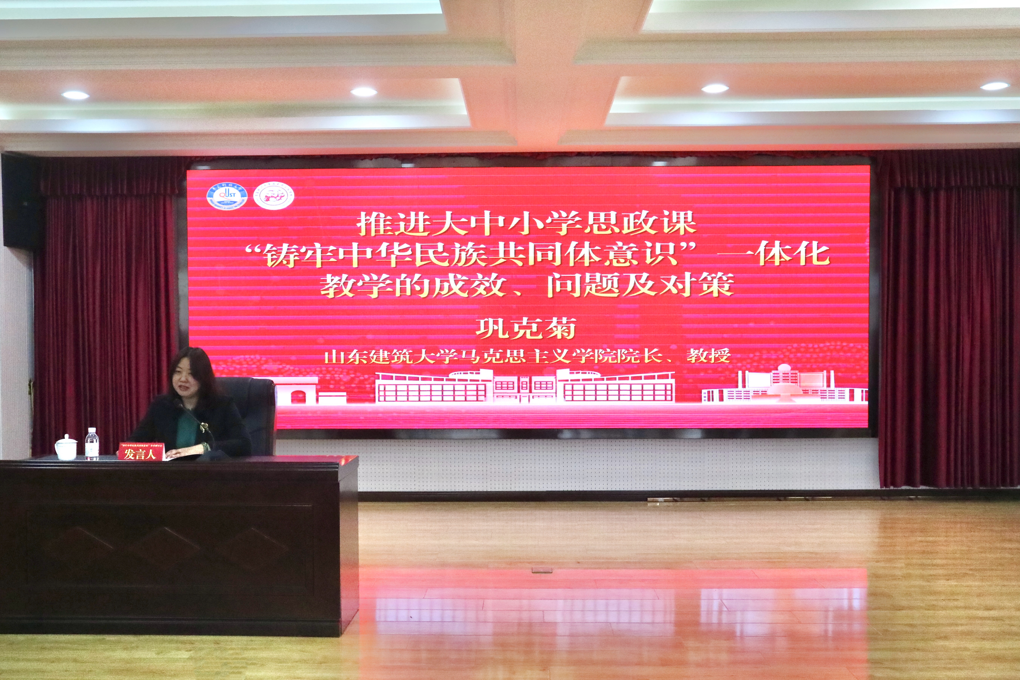 巩克菊以《推进大中小学思政课“铸牢中华民族共同体意识”一体化教学的成效、问题及对策》为题作主旨报告。她以基层探索与实证反思为切入点,从实践成效、现存问题、优化对策三方面展开深入阐述。目前国家教材体系持续完善,多部门协同推进教学改革,省内依托专业研究中心搭建跨学段协作体,育人载体不断丰富,学生对中华民族共同体意识认同度持续提升。但仍存在学段衔接不畅、师资能力不足、教学资源供给不均、评价体系不健全等现实问题。后续需持续聚焦机制统筹、师资赋能、资源优化、评价创新等方面全力推动“铸牢中华民族共同体意识”大中小学思政课一体化教学走深走实。