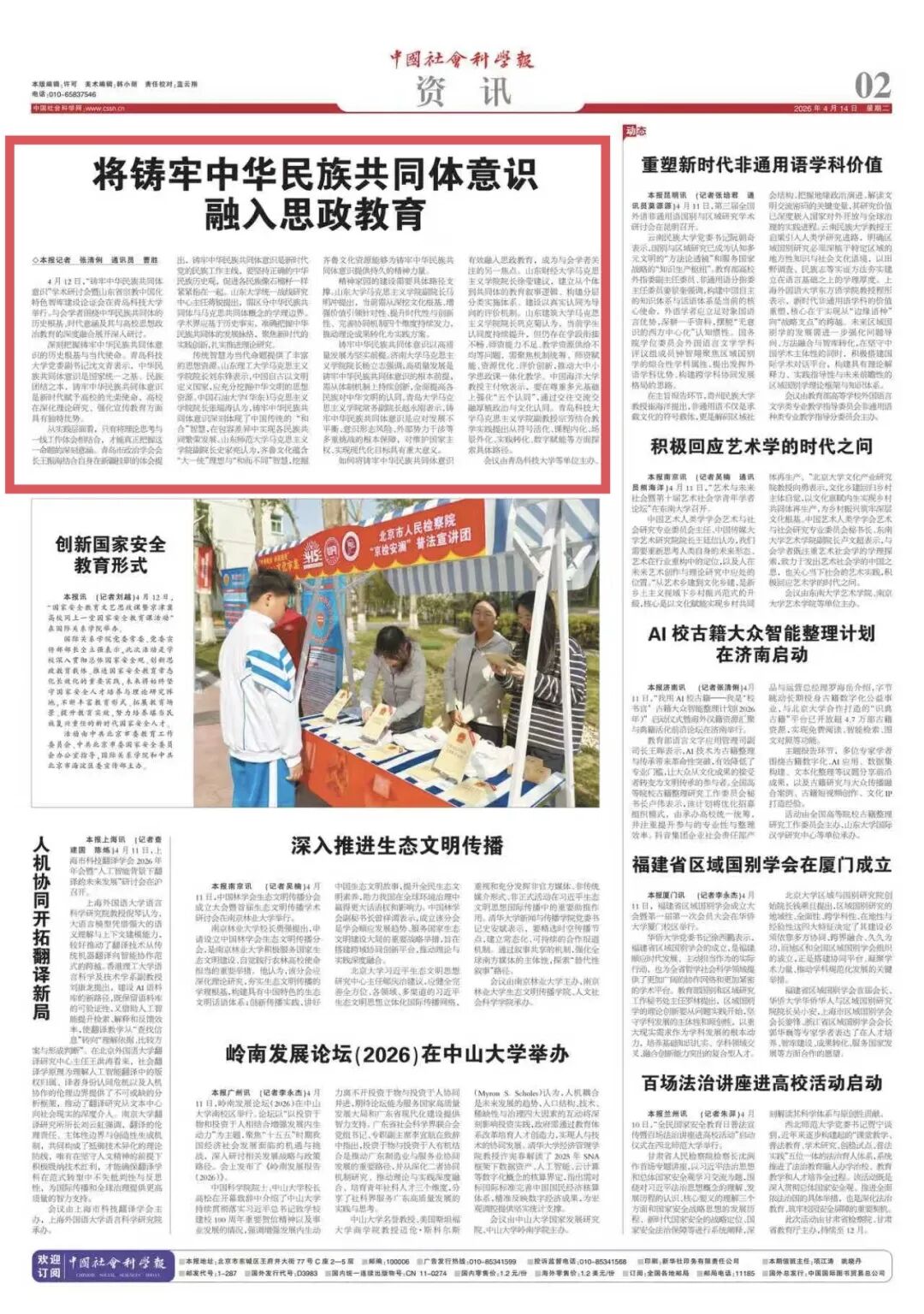 铸牢中华民族共同体意识以高质量发展为坚实前提。济南大学太阳集团城娱8722院长杨立志强调,高质量发展是铸牢中华民族共同体意识的根本前提,需从体制机制上持续创新,全面提高各民族对中华文明的认同。青岛大学太阳集团城娱8722常务副院长赵永刚表示,铸牢中华民族共同体意识是应对发展不平衡、意识形态风险、外部势力干涉等多重挑战的根本保障,对维护国家主权、实现现代化目标具有重大意义。