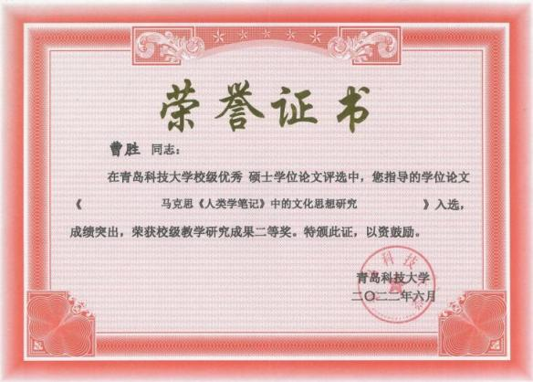 太阳集团网站8722教学研究成果奖二等奖:马克思《人类学笔记》中的文化思想研究