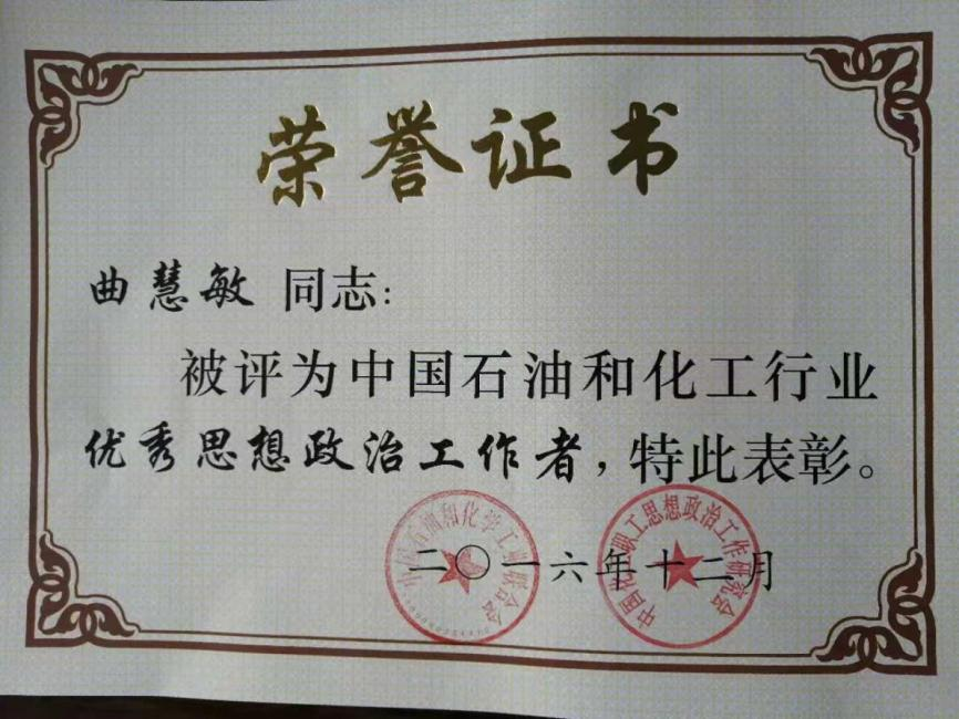 中国石油和化工行业优秀思想政治工作者:曲慧敏