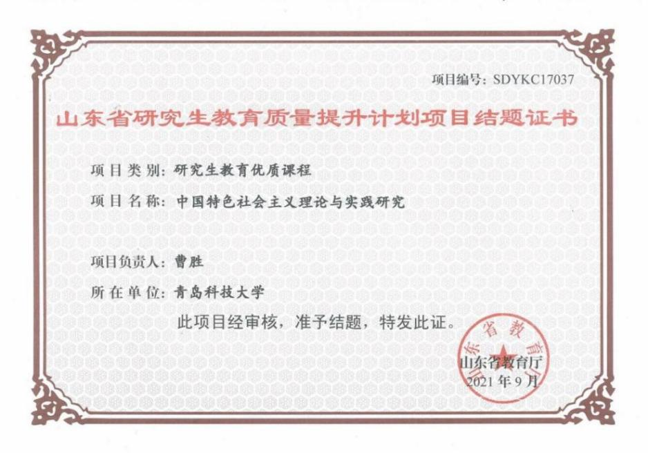 山东省研究生教育优质课程:中国特色社会主义理论与实践研究