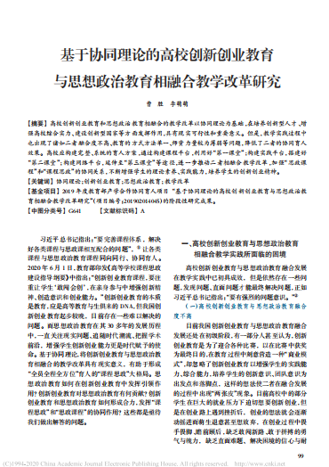 《思想政治课研究》:基于协同理论的高校创新创业教育与思想政治教育相融合教学改革研究