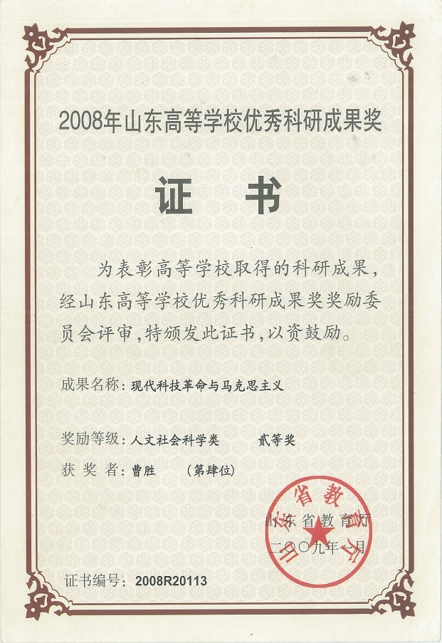 2009年度山东高等学校优秀科研成果二等奖:现代科技革命与马克思主义