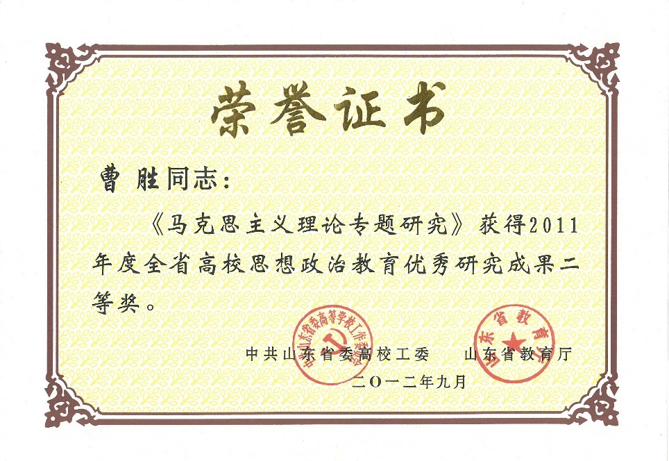 2012年度山东省高校思想政治教育优秀研究成果二等奖:马克思主义理论专题研究