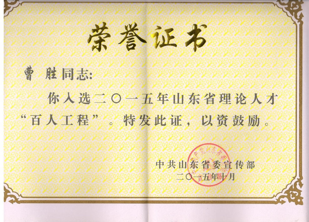 山东省理论人才“百人工程”:曹胜