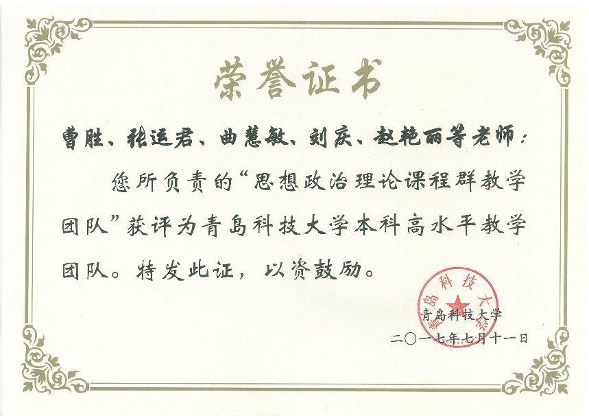 太阳集团网站8722本科高水平教学团队: 曹胜、张运君、曲慧敏、刘庆、赵艳丽等
