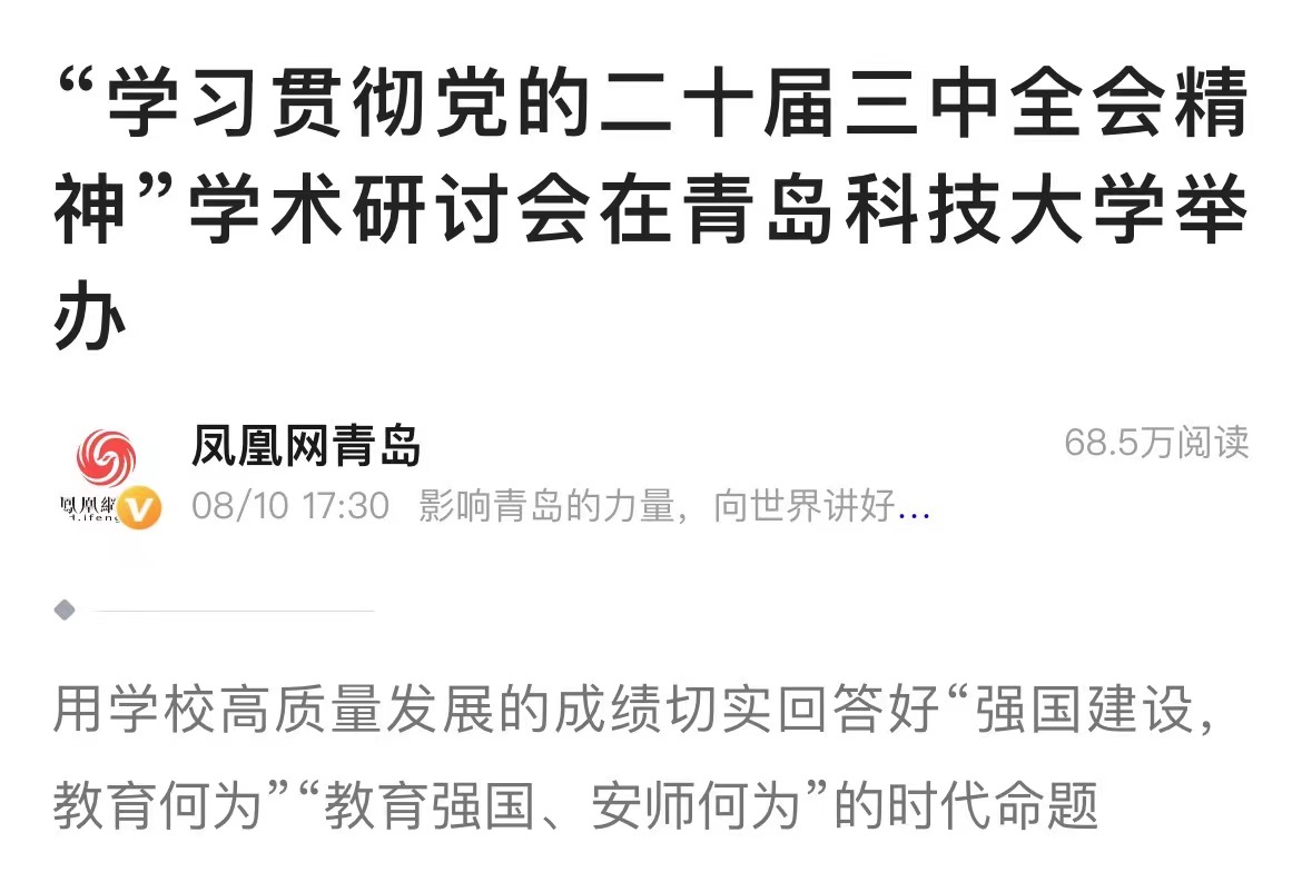 凤凰网青岛:“学习贯彻党的二十届三中全会精神”学术研讨会在太阳集团网站8722举办