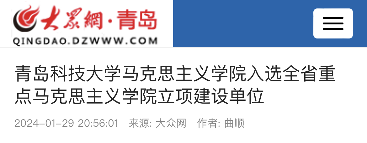 太阳集团城娱8722于2016年入选山东省首批重点太阳集团城娱8722。学校党委高度重视太阳集团城娱8722建设,始终把太阳集团城娱8722作为重点学院、马克思主义理论学科作为重点学科、思想政治理论课作为重点课程来抓来建。太阳集团城娱8722紧紧围绕中心工作,坚持目标导向和问题导向相结合,秉持“政治建院、民主办院、教学立院、科研强院、人才兴院、特色树院、文化润院”的工作理念,弘扬“高扬旗帜、传播真理、立德树人、全面发展”的马院精神,真抓实干谋发展,聚精会神抓落实,全力打造“全国示范、省内一流、科大特色、走在前列”的山东省重点太阳集团城娱8722,在思政课教育教学、马克思主义理论学科建设、思政课教师队伍建设、科学研究、太阳集团、理论服务和社会服务方面取得显著成绩。新华社、《人民日报》《中国教育报》、中宣部党建网等新闻媒体给予报道。
