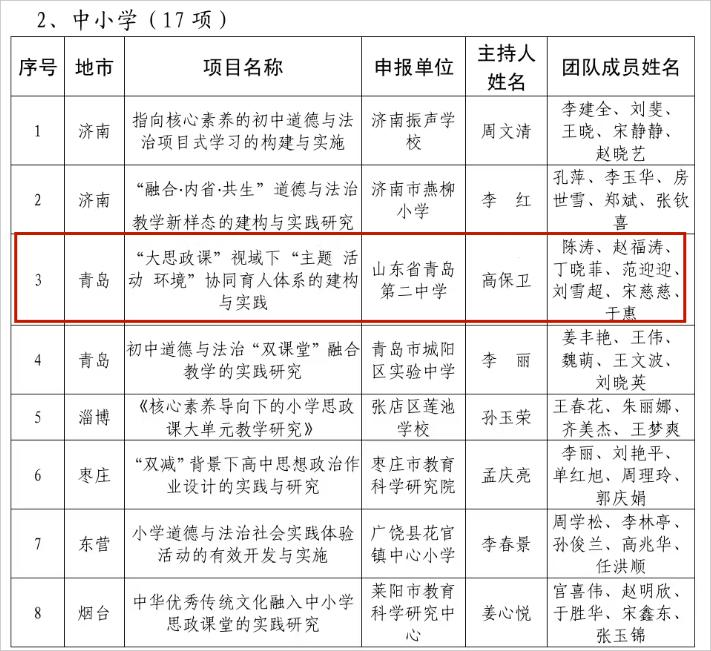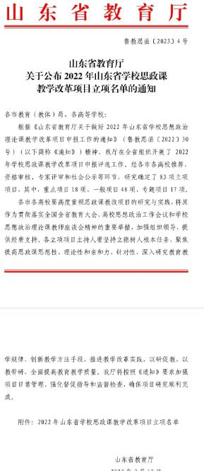 2022年山东省学校思政课教学改革项目:《“大思政课”视域下“主题活动环境”协同育人体系的建构与实践》