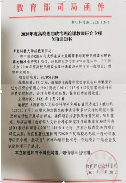 2020年度教育部思政课教师专项:《新时代大学生成长发展需求与高校思想政治理论课的精准化研究》