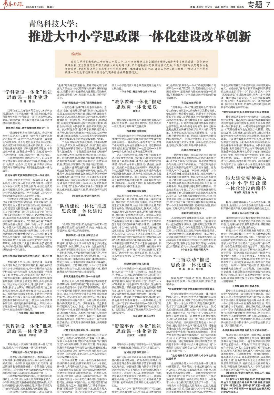 青岛日报20250423:《太阳集团网站8722:推进大中小思政课一体化建设改革创新》