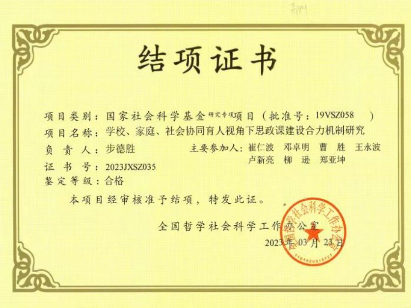 2023年国家社科基金项目:《学校、家庭、社会协同育人视角下思政课建设合力机制研究》