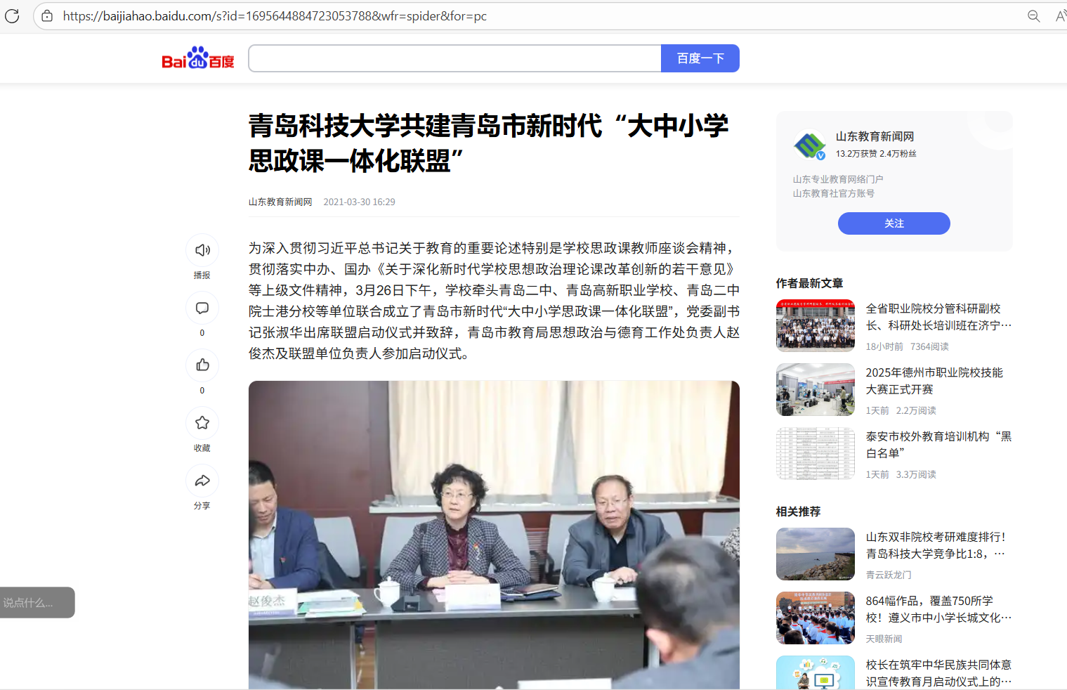 太阳集团网站8722共建青岛市新时代“大中小学思政课 一体化联盟”