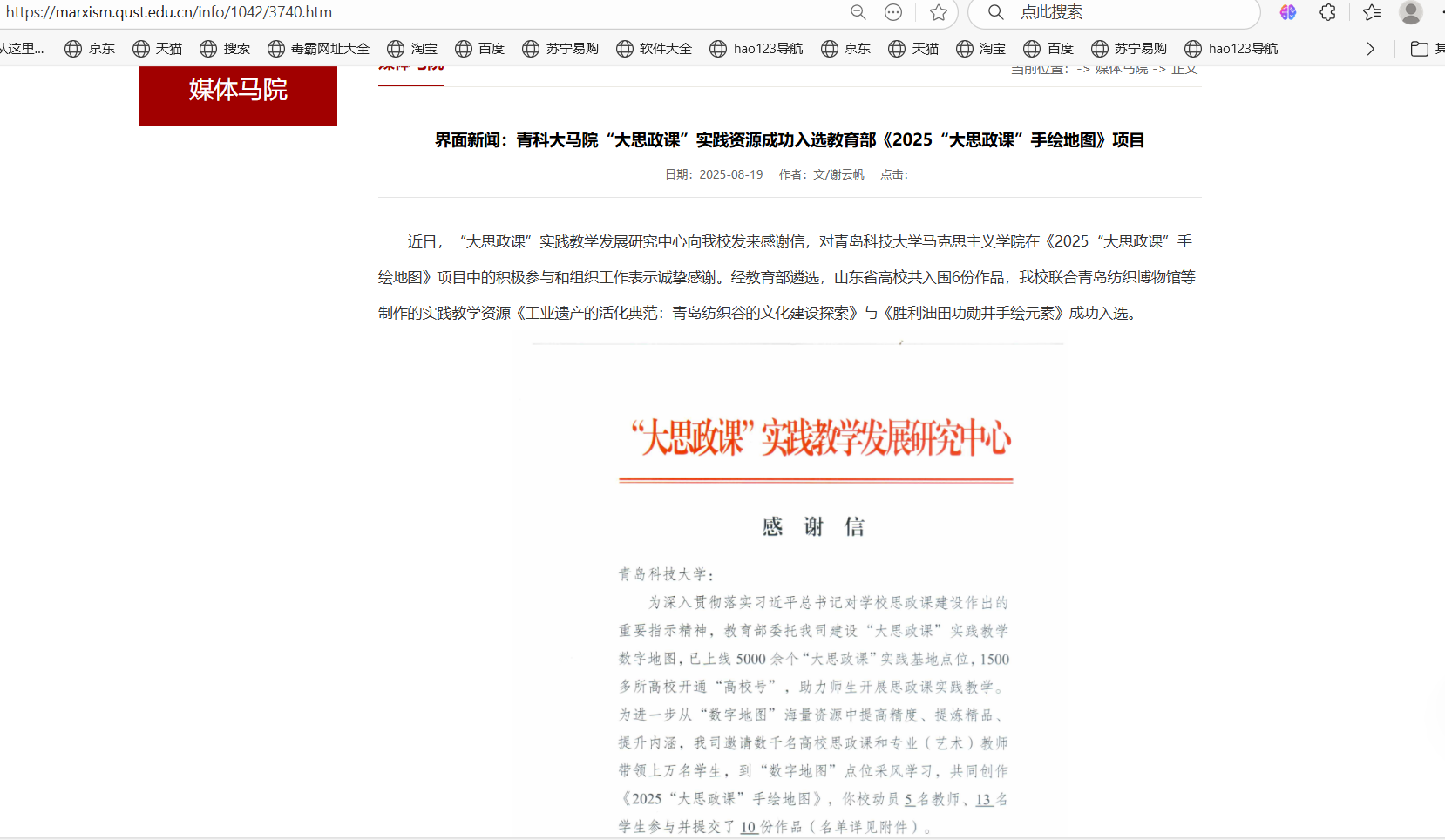 青科大马院“大思政课”实践资源成功入选教育部《2025“大思政课”手绘地图》项目