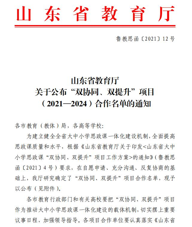 山东省教育厅“双协同、双提升”项目(2021-2024)合作单位
